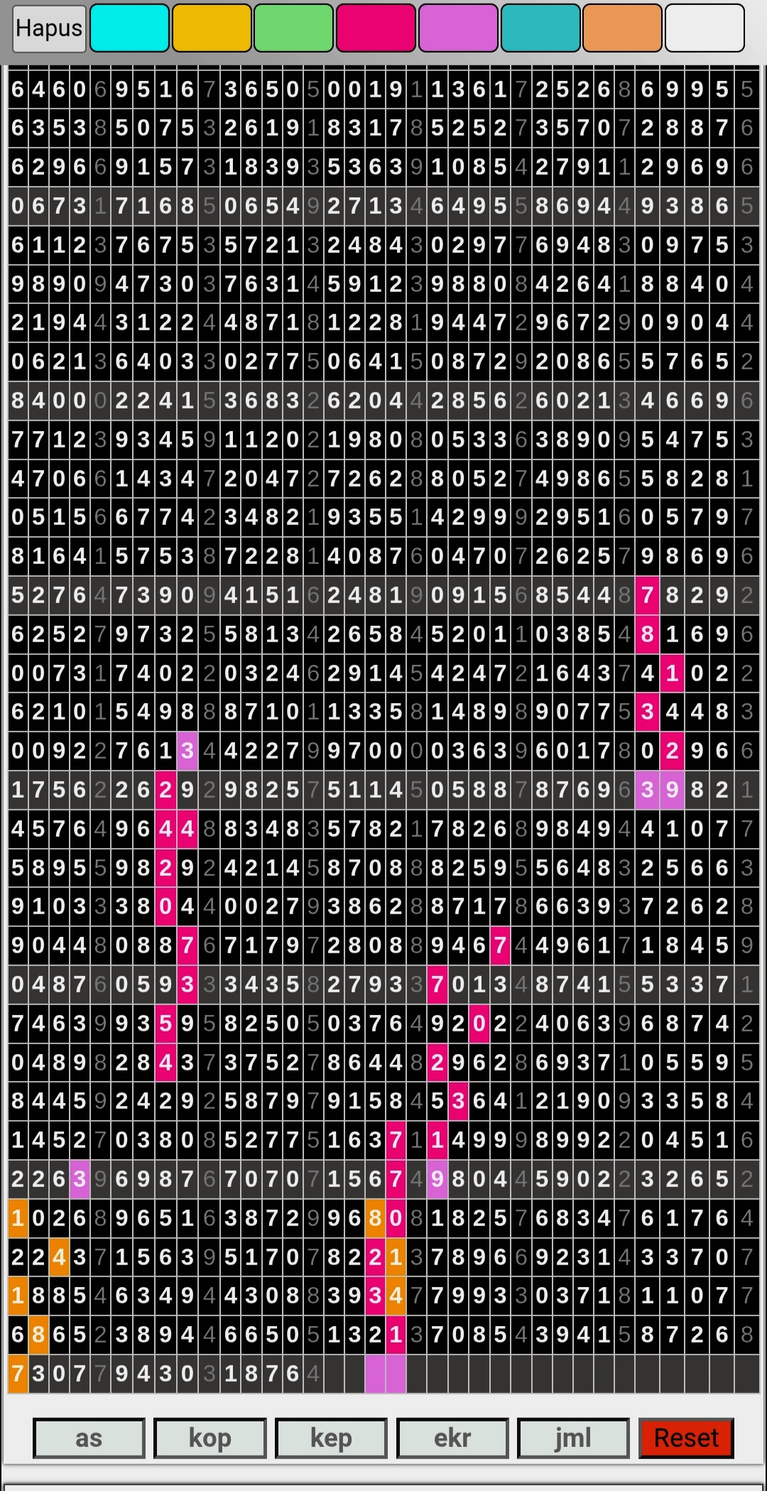 | Rumus Angka Mati berdasarkan kepala harian | 05 06 08 09 16 17 19 20 21 26 27 28 29 30 31 32 37 38 39 40 41 43 48 49 51 52 54 59 63 64 65 74 75 76 85 86 87 97 98 |