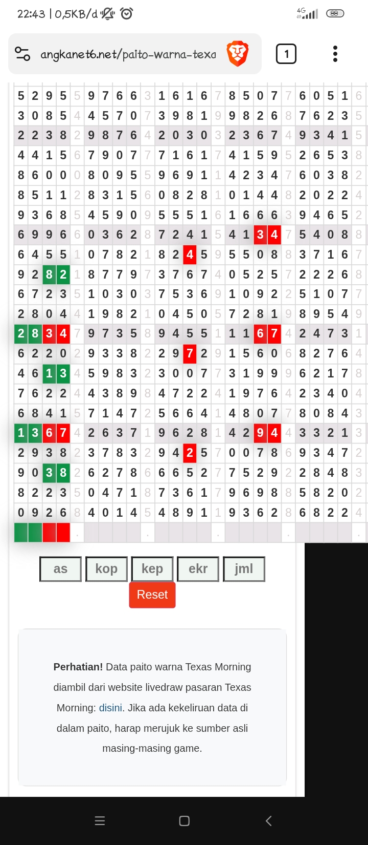 Result Texas Morning terbaru |