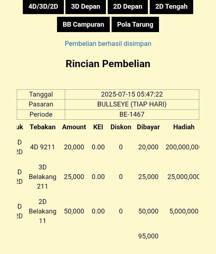 Prediksi Bullseye Jumat, 07-11-2025 | |