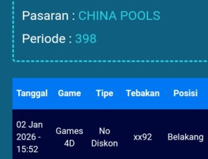 Prediksi Chinapools Sabtu, 27-12-2025 Merupakan Prediksi Otomatis yang menggabungkan Metode Kalender Togel Dengan LN Generator yang akurasi prediksinya sudah kita ketahui bersama. Jadi harap Maklum Jika kadang meleset Prediksi Chinapools kita. Jadikan ini sebagai perbandingan saja dan tetap Utamakan karya sendiri