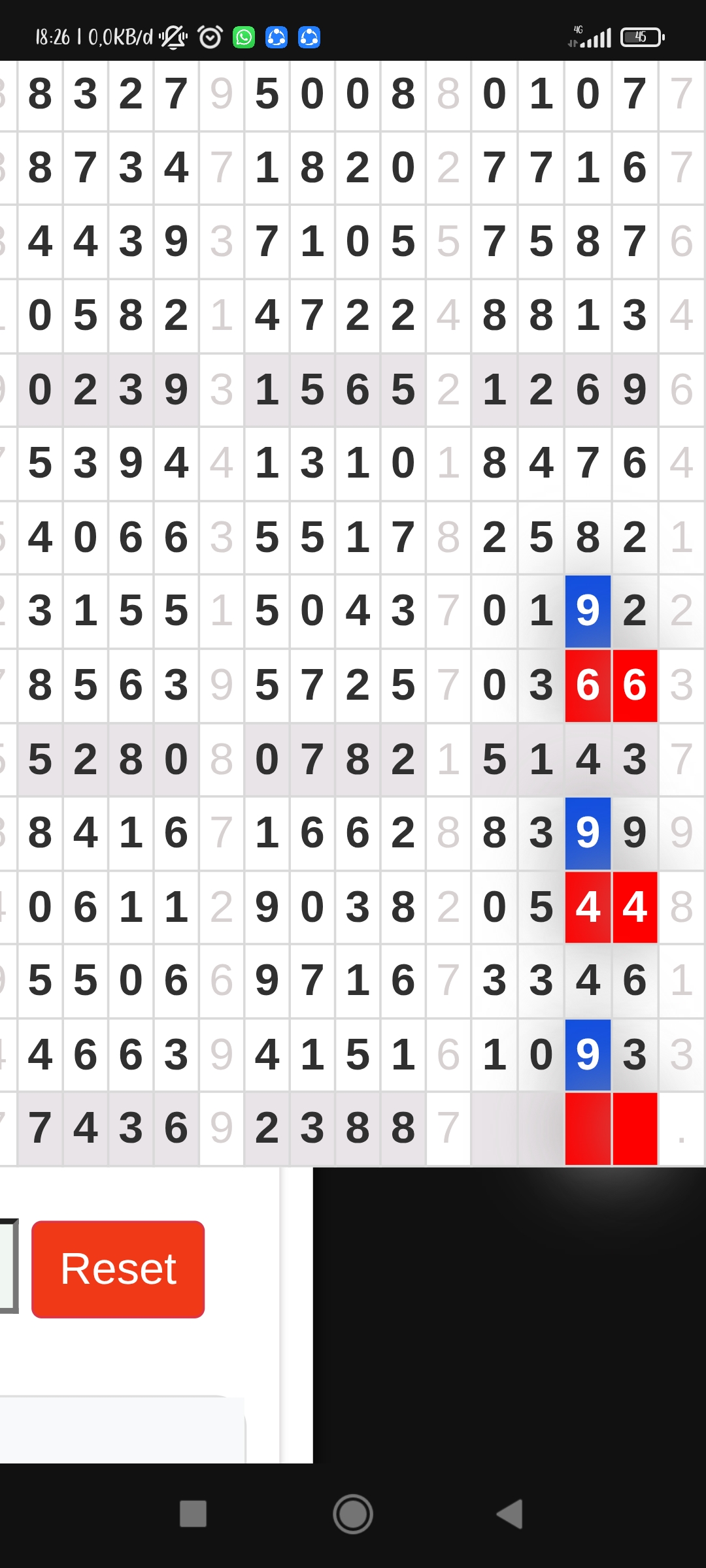 | Rumus Angka Mati berdasarkan kepala harian | 04 06 07 09 10 18 19 20 21 29 30 31 32 42 43 50 51 53 54 61 62 64 71 72 73 74 75 76 82 83 84 85 86 87 93 94 95 96 98 |