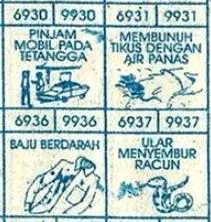 | Rumus Angka Mati berdasarkan kepala harian | 08 09 10 16 17 19 20 27 28 30 31 32 37 38 39 40 41 42 43 48 49 50 51 52 54 59 60 62 63 65 74 75 76 85 86 87 96 97 98 |