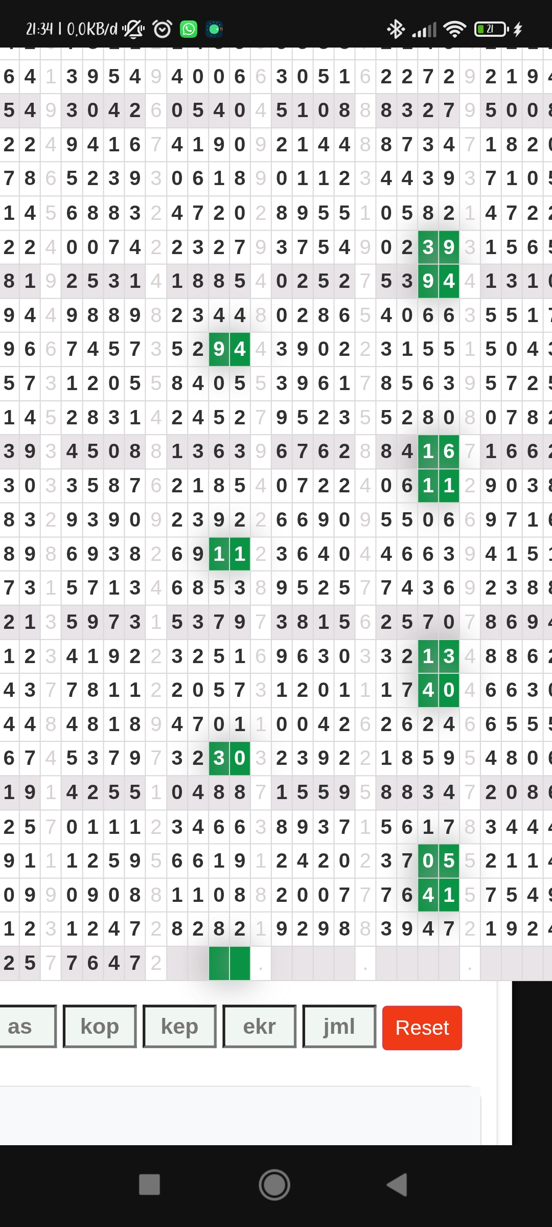 | Rumus Kontrol 1 berdasarkan As harian | 1567890 2345678 1234590 0124589 |