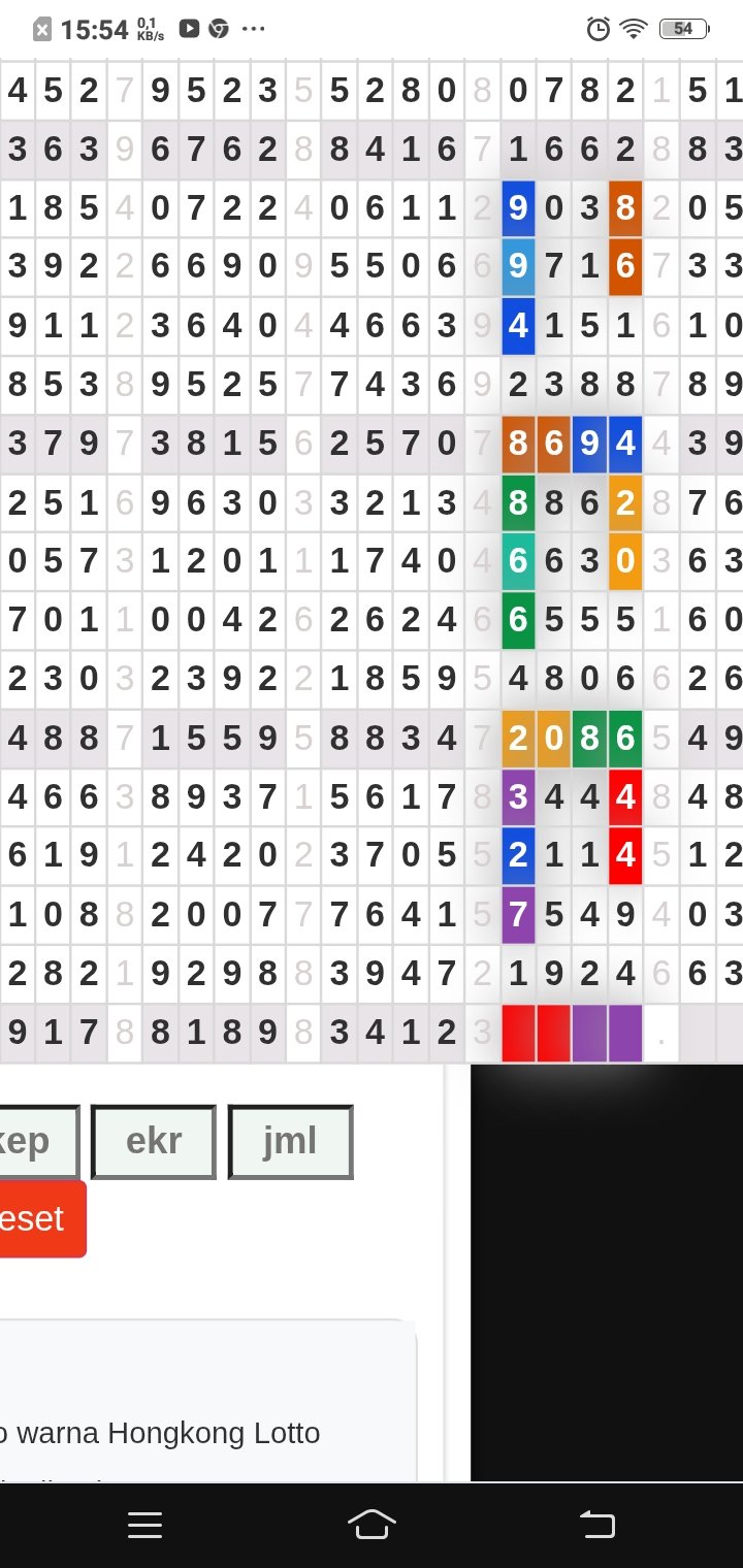 | Rumus Angka Mati berdasarkan kepala harian | 05 06 08 10 15 16 17 18 19 20 21 26 27 28 29 30 32 37 38 39 40 41 43 48 52 53 54 63 64 65 74 75 76 86 87 94 95 97 98 |