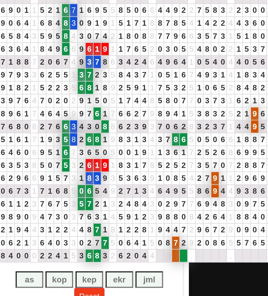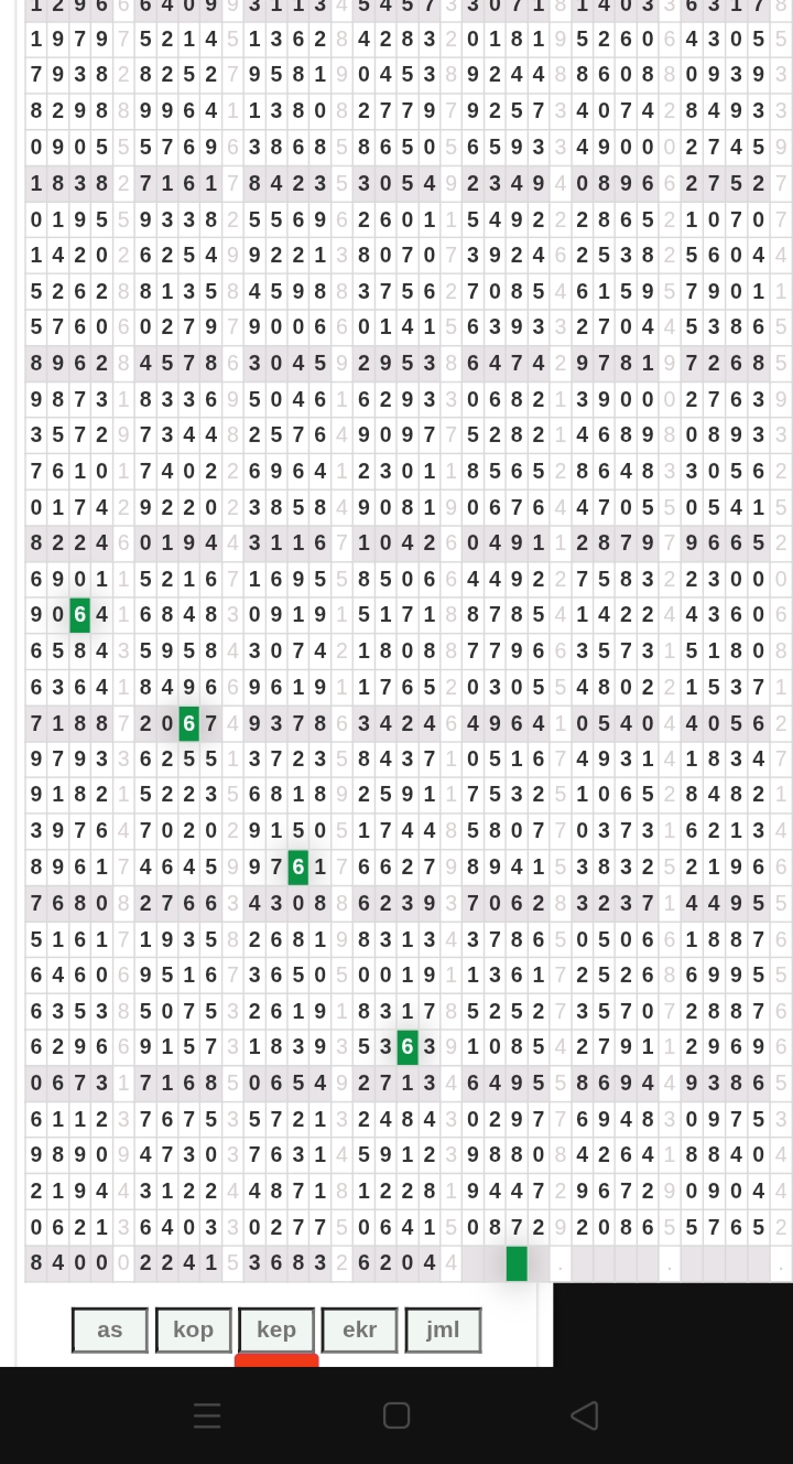 | Rumus Kontrol 1 berdasarkan As harian | 1567890 2345678 1234590 0124589 |