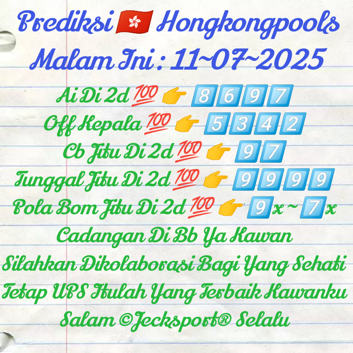 Prediksi HK Rabu, 05-11-2025 Merupakan Prediksi Otomatis yang menggabungkan Metode Kalender Togel Dengan LN Generator yang akurasi prediksinya sudah kita ketahui bersama. Jadi harap Maklum Jika kadang meleset Prediksi HK kita. Jadikan ini sebagai perbandingan saja dan tetap Utamakan karya sendiri