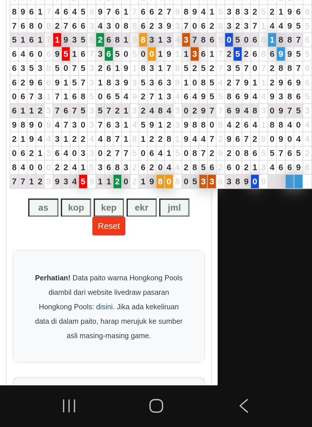 | Rumus Angka Mati berdasarkan kepala harian | 04 05 06 07 08 09 10 15 16 17 18 21 26 28 29 30 31 32 41 42 43 52 53 54 64 65 72 73 75 76 83 84 86 93 94 95 96 97 98 |