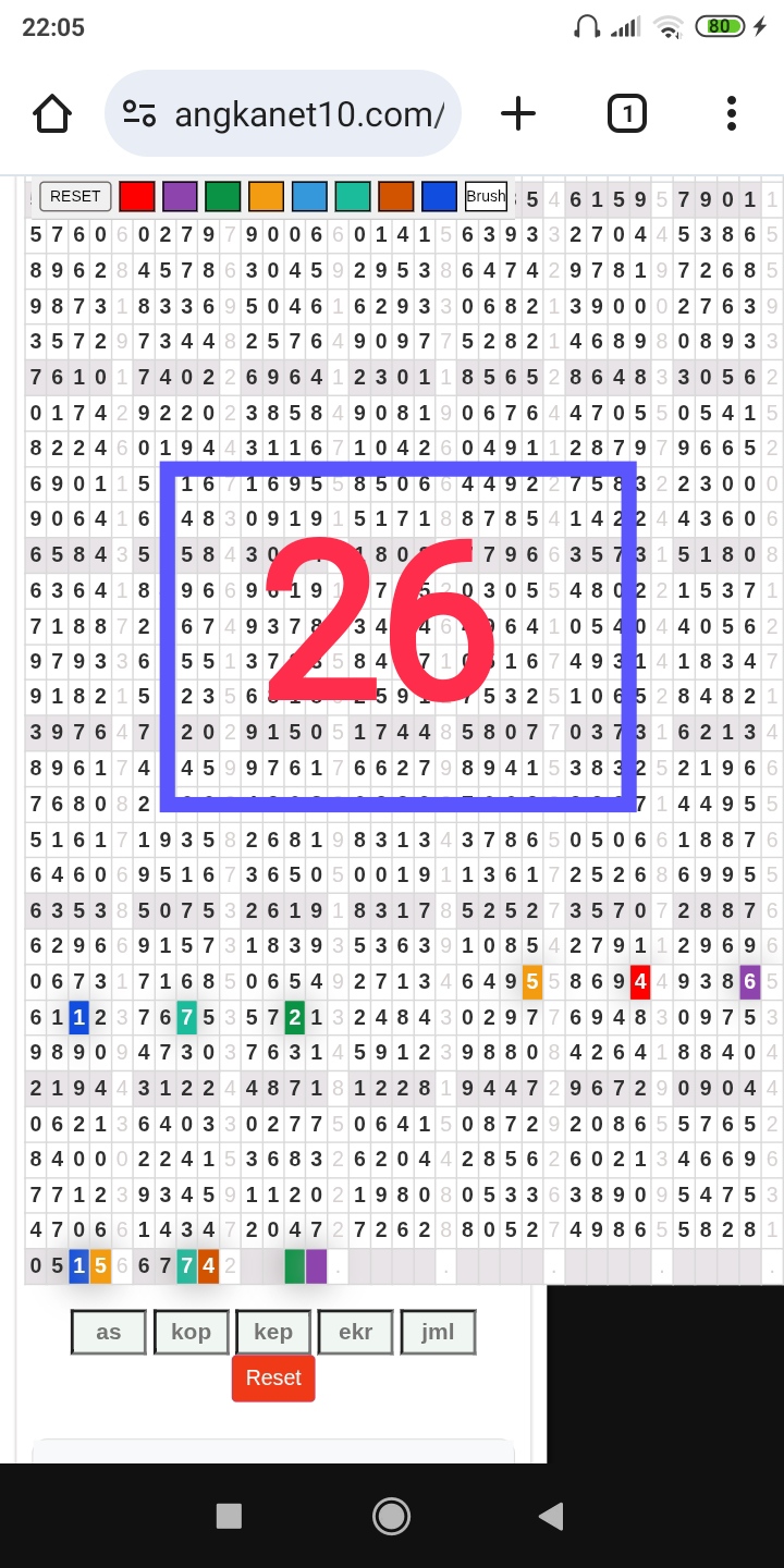 | Rumus Angka Mati berdasarkan kepala harian | 05 06 08 09 16 17 19 20 21 26 27 28 29 30 31 32 37 38 39 40 41 43 48 49 51 52 54 59 63 64 65 74 75 76 85 86 87 97 98 |