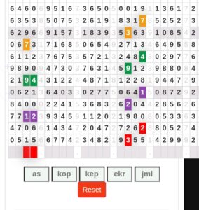 | Rumus Angka Mati berdasarkan kepala harian | 07 08 09 10 18 19 20 21 31 32 38 39 40 42 49 50 51 52 53 54 59 60 61 62 63 64 65 71 72 73 74 76 82 84 85 87 96 97 98 |
