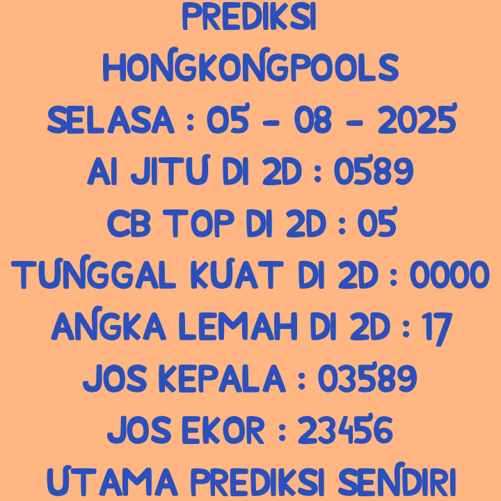 Prediksi HK Rabu, 05-11-2025 Merupakan Prediksi Otomatis yang menggabungkan Metode Kalender Togel Dengan LN Generator yang akurasi prediksinya sudah kita ketahui bersama. Jadi harap Maklum Jika kadang meleset Prediksi HK kita. Jadikan ini sebagai perbandingan saja dan tetap Utamakan karya sendiri