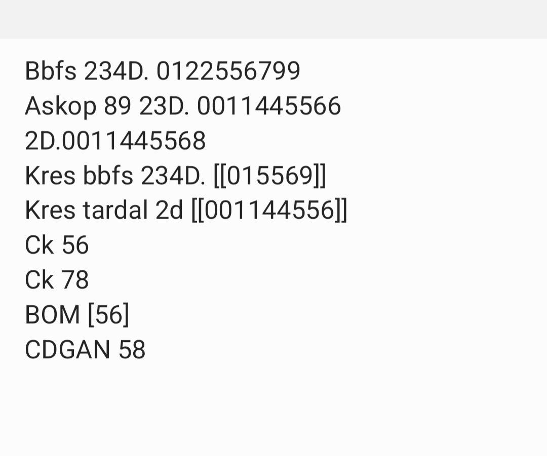 | Rumus Kontrol 1 berdasarkan As harian | 1567890 2345678 1234590 0124589 |