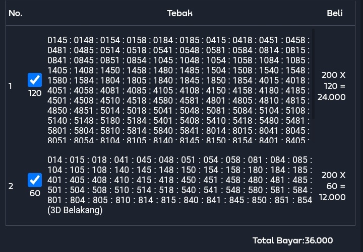 | Rumus Angka Mati berdasarkan kepala harian | 07 08 09 10 19 20 21 27 28 31 38 39 40 41 42 43 48 49 50 51 52 53 54 59 60 61 62 63 65 71 73 74 76 85 86 87 96 97 98 |