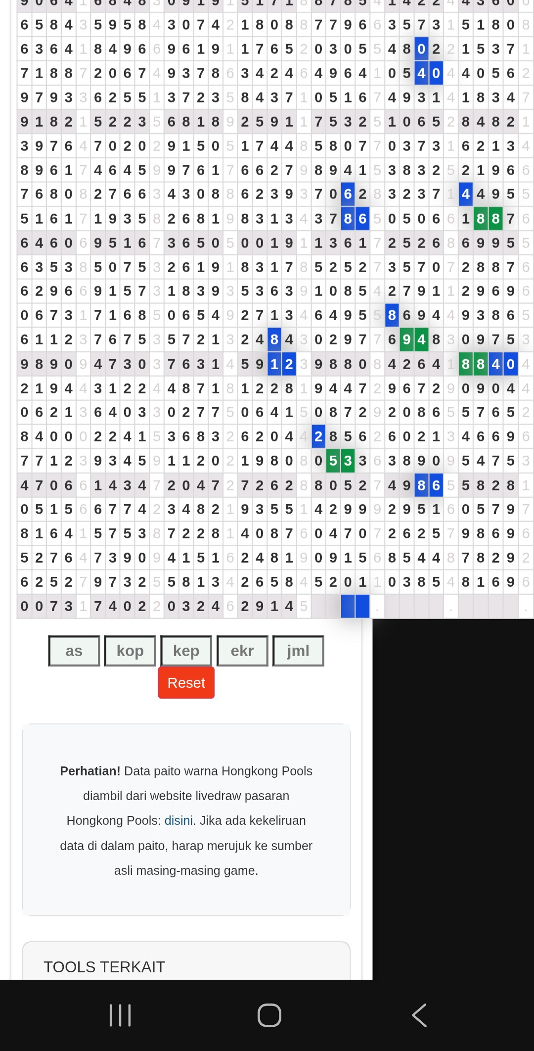 | Rumus Angka Mati berdasarkan kepala harian | 04 06 07 09 10 18 19 20 21 29 30 31 32 42 43 50 51 53 54 61 62 64 71 72 73 74 75 76 82 83 84 85 86 87 93 94 95 96 98 |