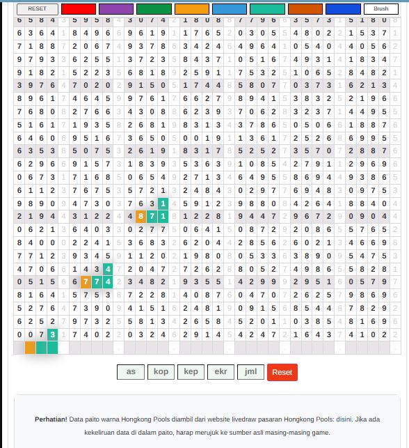 | Rumus Angka Mati berdasarkan kepala harian | 07 08 09 10 18 19 20 21 31 32 38 39 40 42 49 50 51 52 53 54 59 60 61 62 63 64 65 71 72 73 74 76 82 84 85 87 96 97 98 |