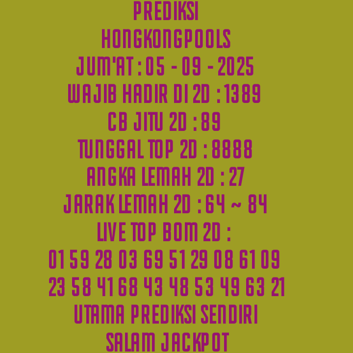 Prediksi HK Rabu, 05-11-2025 Merupakan Prediksi Otomatis yang menggabungkan Metode Kalender Togel Dengan LN Generator yang akurasi prediksinya sudah kita ketahui bersama. Jadi harap Maklum Jika kadang meleset Prediksi HK kita. Jadikan ini sebagai perbandingan saja dan tetap Utamakan karya sendiri