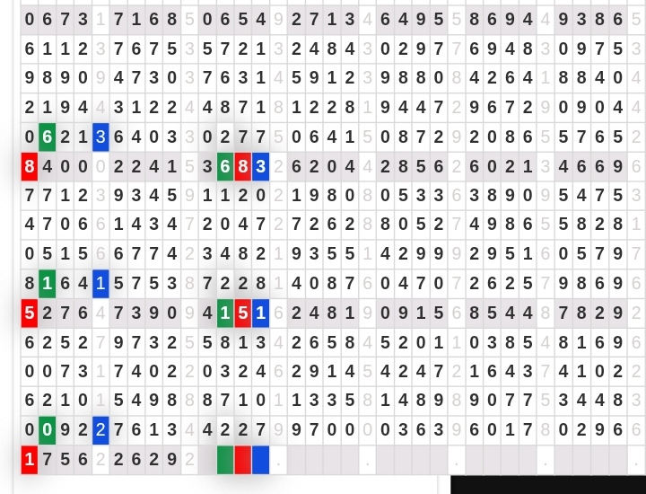 | Rumus Angka Mati berdasarkan kepala harian | 04 06 07 09 10 18 19 20 21 29 30 31 32 42 43 50 51 53 54 61 62 64 71 72 73 74 75 76 82 83 84 85 86 87 93 94 95 96 98 |