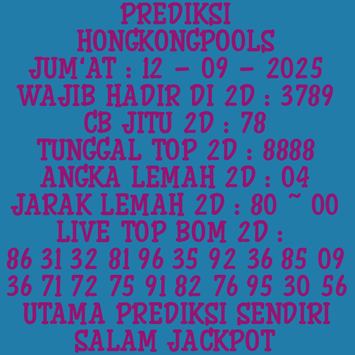 Selamat Bergabung kembali bersama angkanet dalam room Prediksi HK. Untuk kenyamanan dalam berprediksi, kami melarang adanya posting nomor WA, Web atau FB. Angkanet juga tidak pernah menjual prediksi, software, atau aplikasi togel lainnya. Berprediksilah secara damai dan elegan. Terima kasih telah menjadi pengunjung setia angkanet