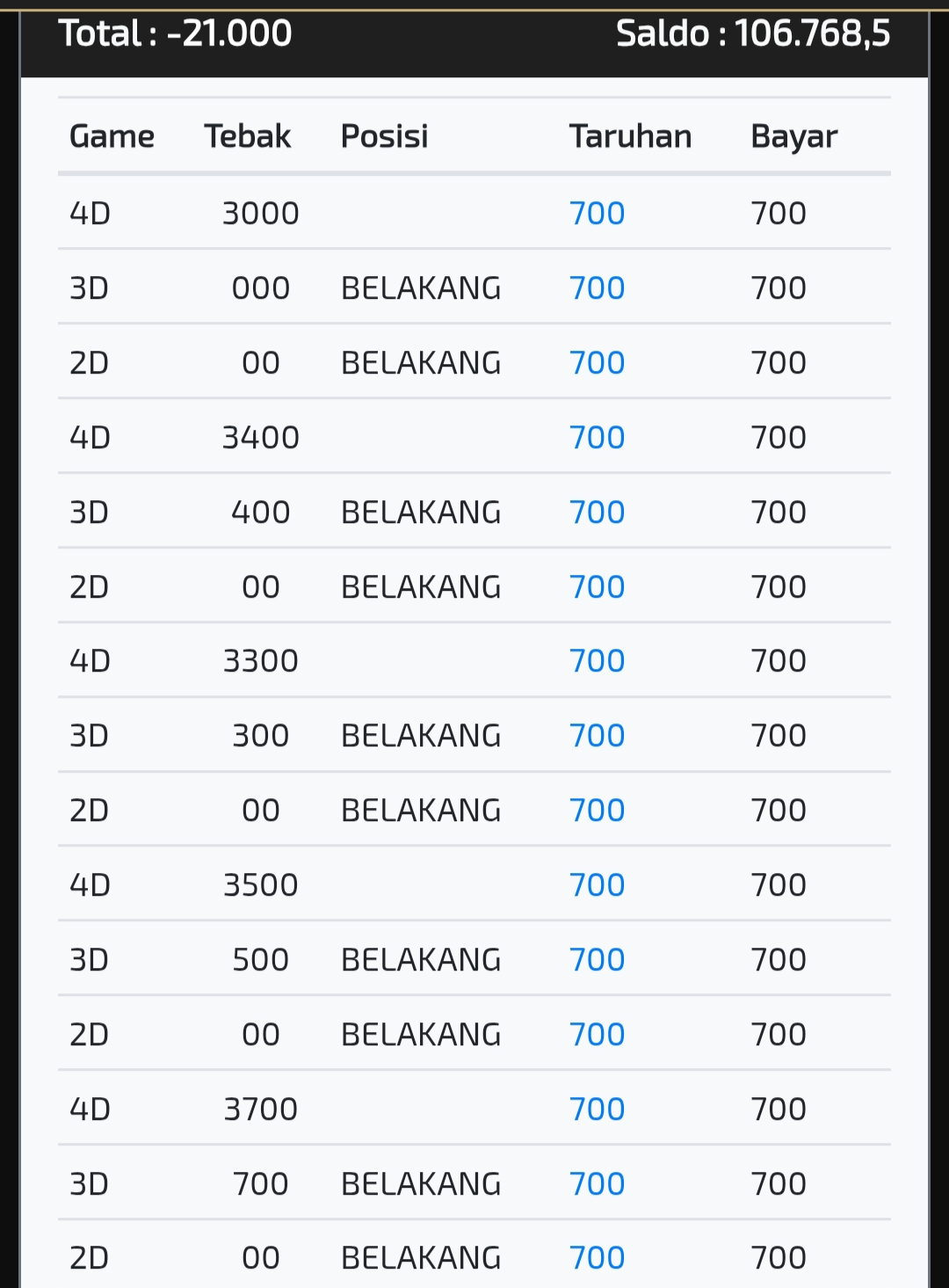 Prediksi Ini Berubah secara otomatis sesuai hari dan result pasaran masing-masing. Untuk melihat prediksi sebelumnya klik tombol nomor hitam diatas