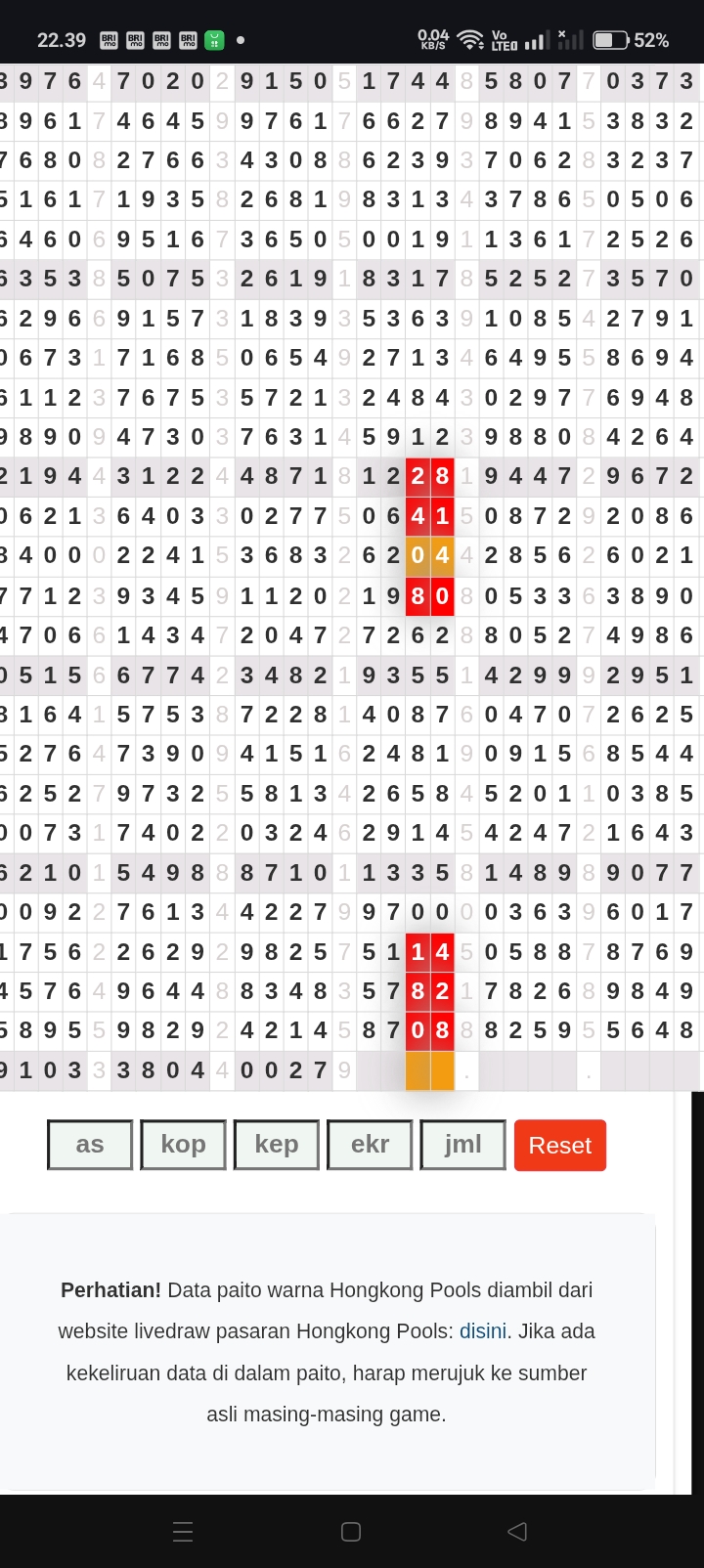 | Rumus Angka Mati berdasarkan kepala harian | 05 06 08 09 16 17 19 20 21 26 27 28 29 30 31 32 37 38 39 40 41 43 48 49 51 52 54 59 63 64 65 74 75 76 85 86 87 97 98 |