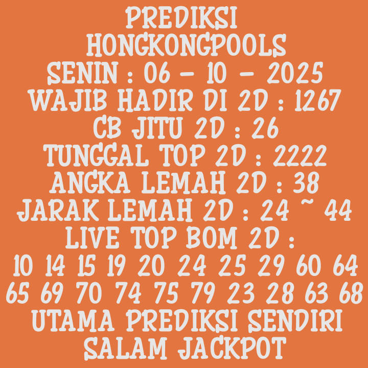 Prediksi HK Rabu, 05-11-2025 Merupakan Prediksi Otomatis yang menggabungkan Metode Kalender Togel Dengan LN Generator yang akurasi prediksinya sudah kita ketahui bersama. Jadi harap Maklum Jika kadang meleset Prediksi HK kita. Jadikan ini sebagai perbandingan saja dan tetap Utamakan karya sendiri
