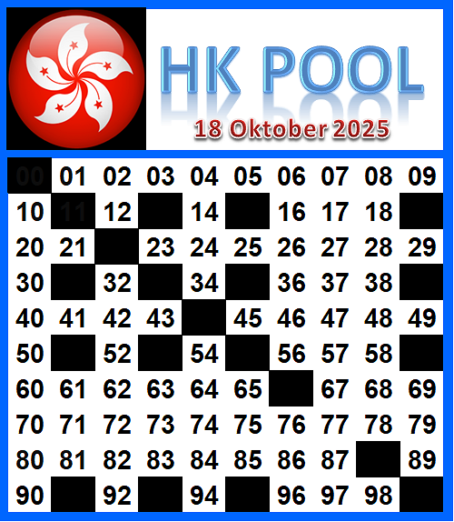 Prediksi HK Minggu, 02-11-2025 Merupakan Prediksi Otomatis yang menggabungkan Metode Kalender Togel Dengan LN Generator yang akurasi prediksinya sudah kita ketahui bersama. Jadi harap Maklum Jika kadang meleset Prediksi HK kita. Jadikan ini sebagai perbandingan saja dan tetap Utamakan karya sendiri
