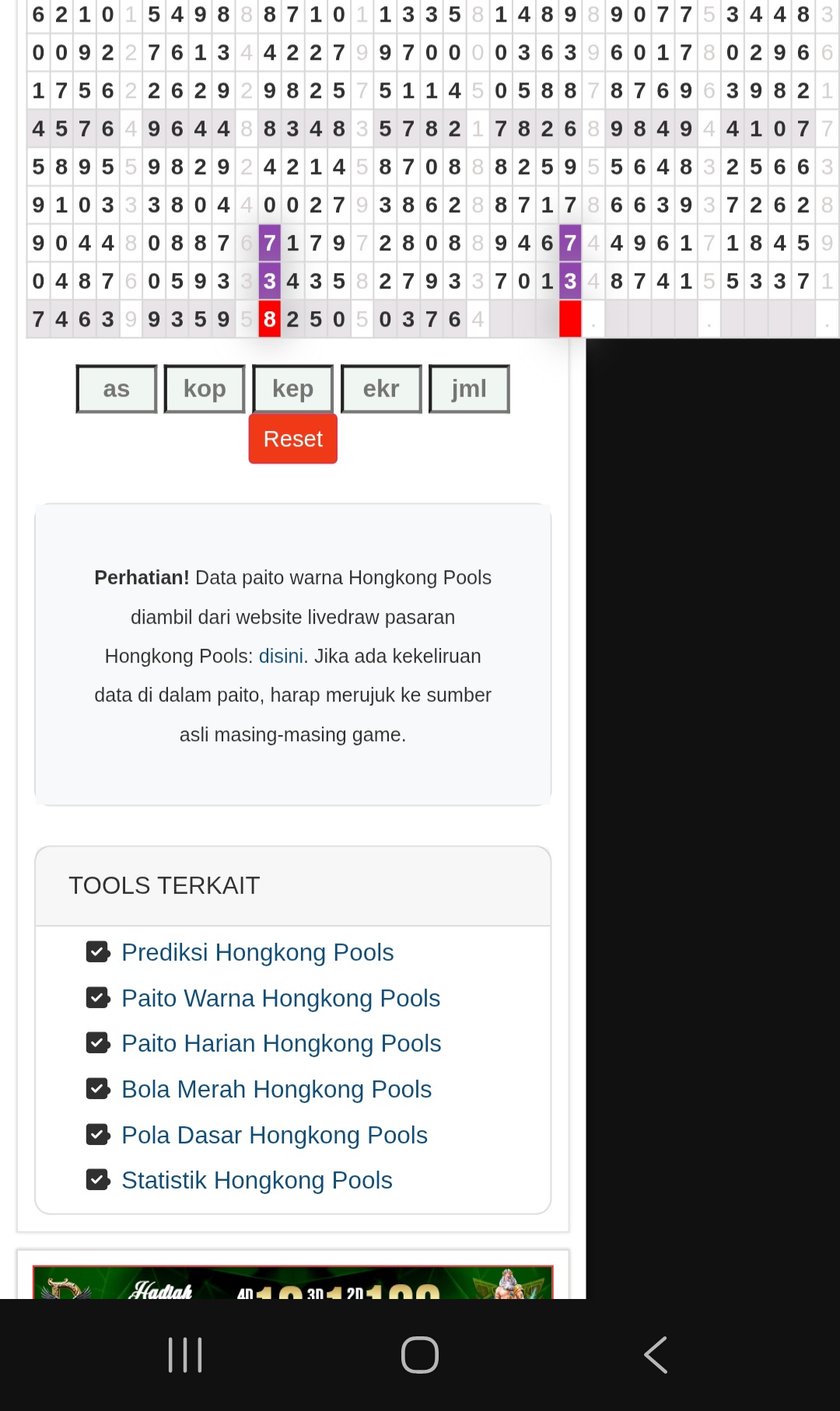 | Rumus Angka Mati berdasarkan kepala harian | 07 08 09 10 19 20 21 27 28 31 38 39 40 41 42 43 48 49 50 51 52 53 54 59 60 61 62 63 65 71 73 74 76 85 86 87 96 97 98 |
