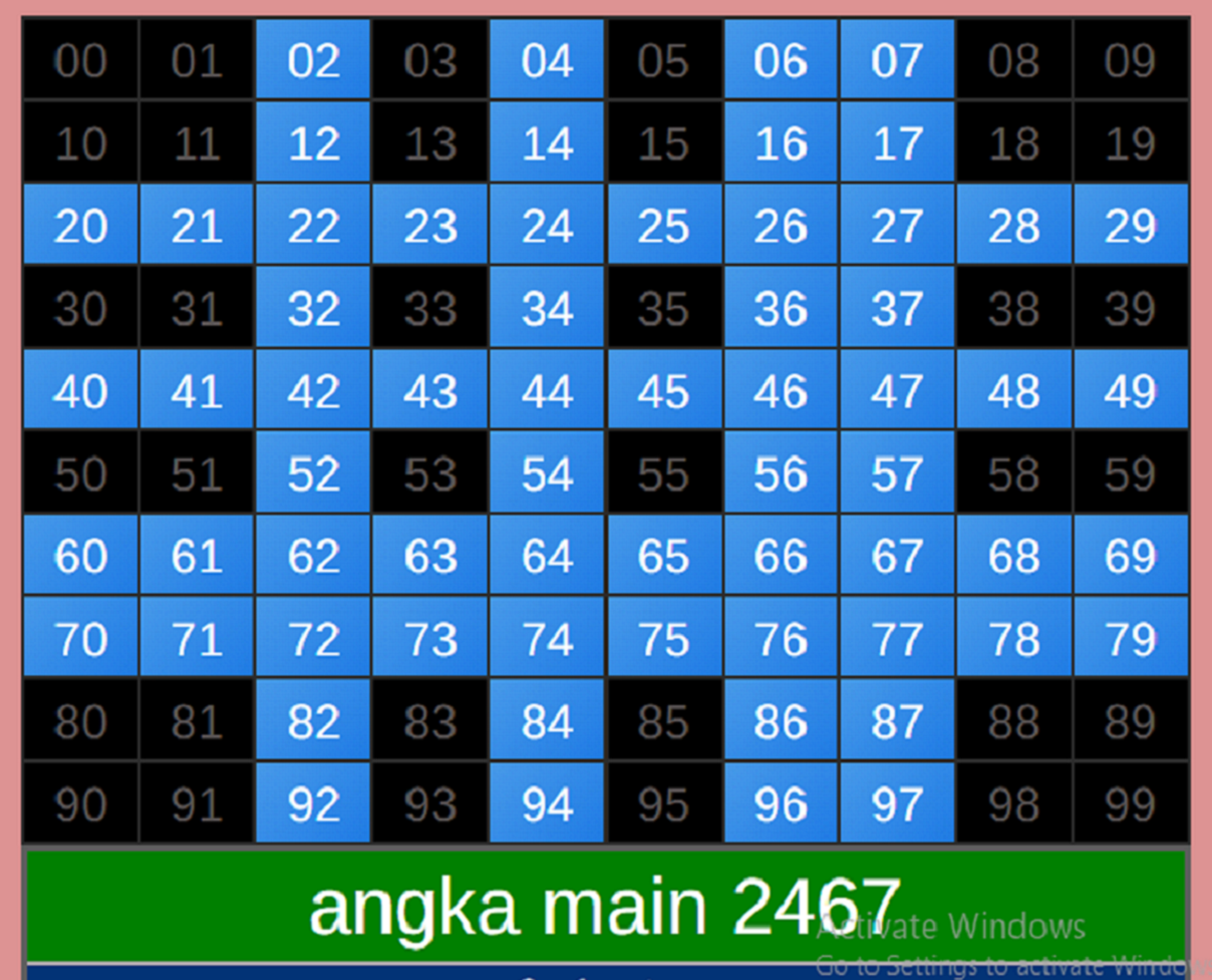 | Rumus Angka Mati berdasarkan kepala harian | 08 09 10 16 17 19 20 27 28 30 31 32 37 38 39 40 41 42 43 48 49 50 51 52 54 59 60 62 63 65 74 75 76 85 86 87 96 97 98 |