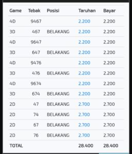 | Rumus Kontrol 2 berdasarkan Ekor harian | 1354802 2345689 9357048 |