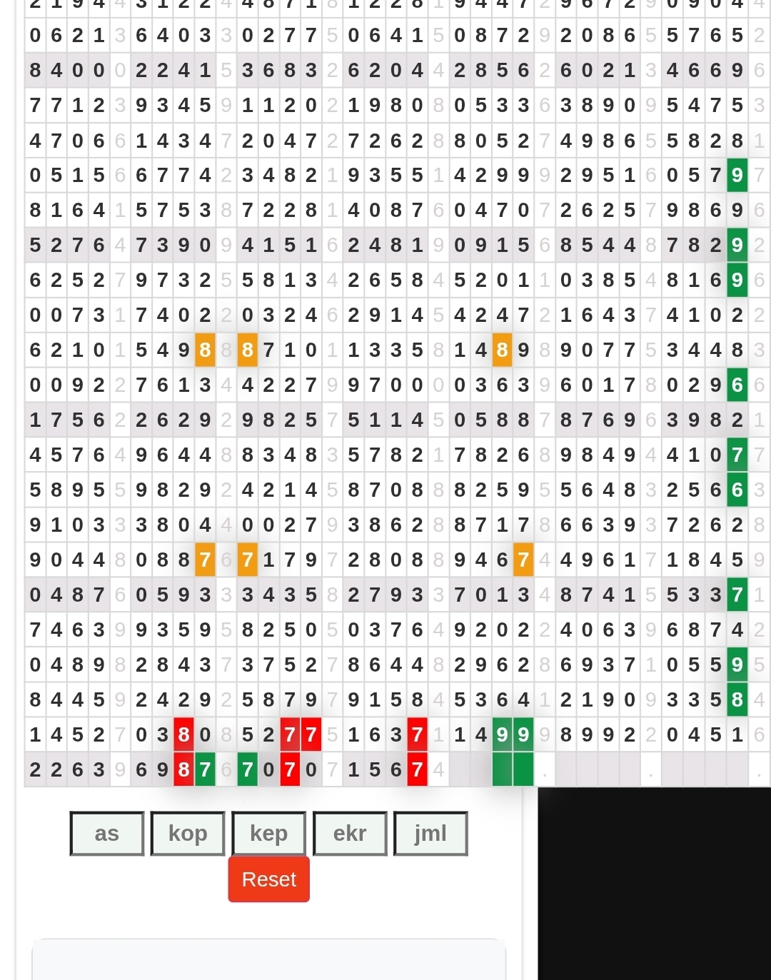 | Rumus Angka Mati berdasarkan kepala harian | 04 05 06 07 08 09 10 15 16 17 18 21 26 28 29 30 31 32 41 42 43 52 53 54 64 65 72 73 75 76 83 84 86 93 94 95 96 97 98 |