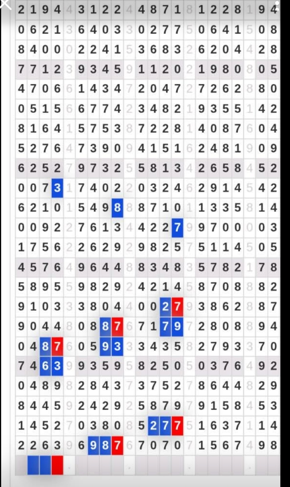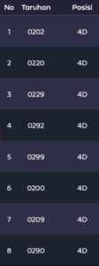 | Rumus Angka Mati berdasarkan kepala harian | 07 08 09 10 18 19 20 21 31 32 38 39 40 42 49 50 51 52 53 54 59 60 61 62 63 64 65 71 72 73 74 76 82 84 85 87 96 97 98 |
