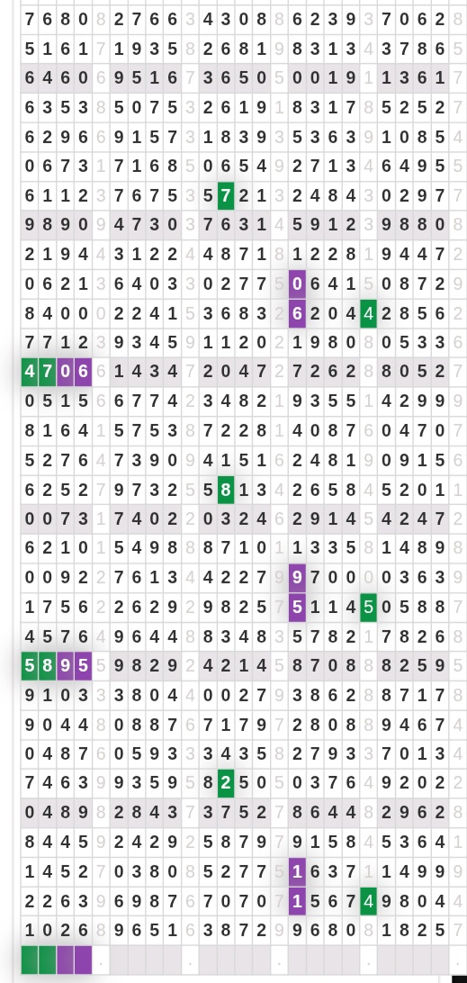 | Rumus Angka Mati berdasarkan kepala harian | 04 06 07 09 10 18 19 20 21 29 30 31 32 42 43 50 51 53 54 61 62 64 71 72 73 74 75 76 82 83 84 85 86 87 93 94 95 96 98 |