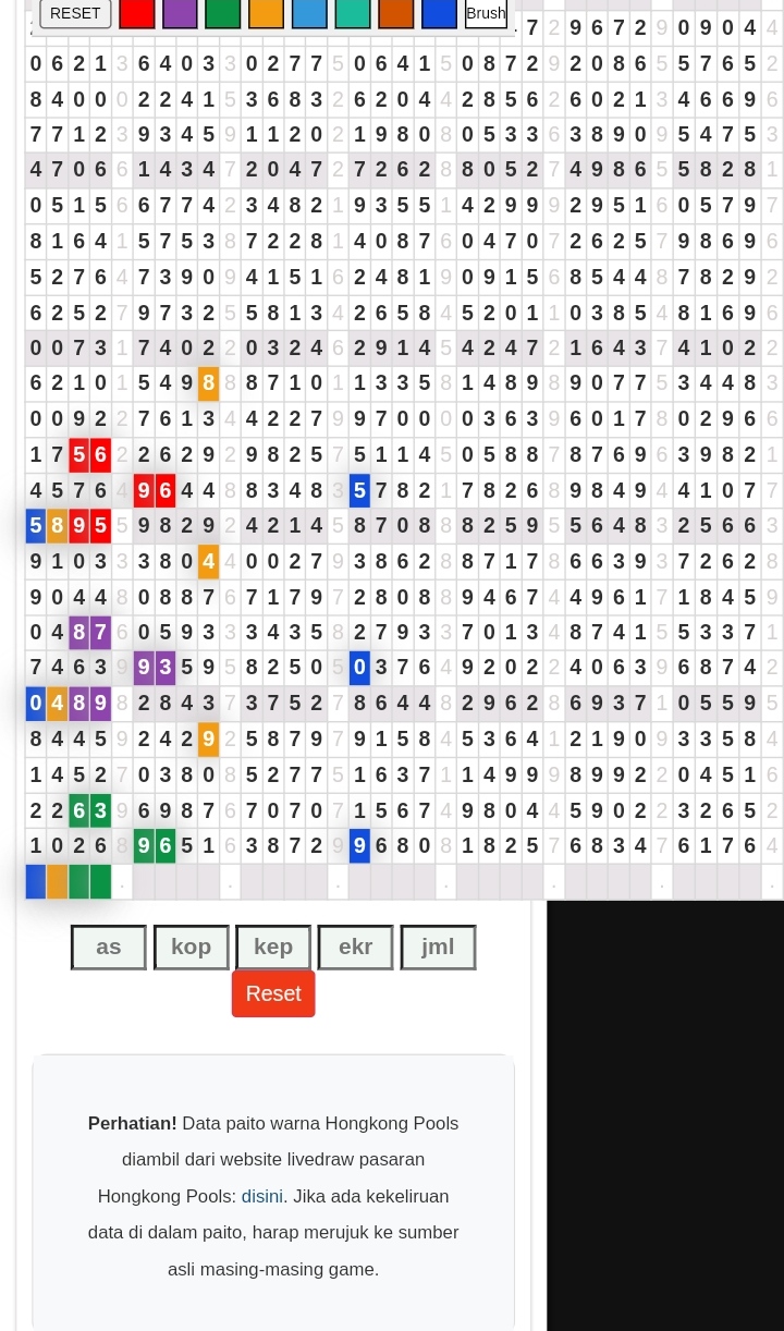 | Rumus Angka Mati berdasarkan kepala harian | 05 06 08 09 16 17 19 20 21 26 27 28 29 30 31 32 37 38 39 40 41 43 48 49 51 52 54 59 63 64 65 74 75 76 85 86 87 97 98 |