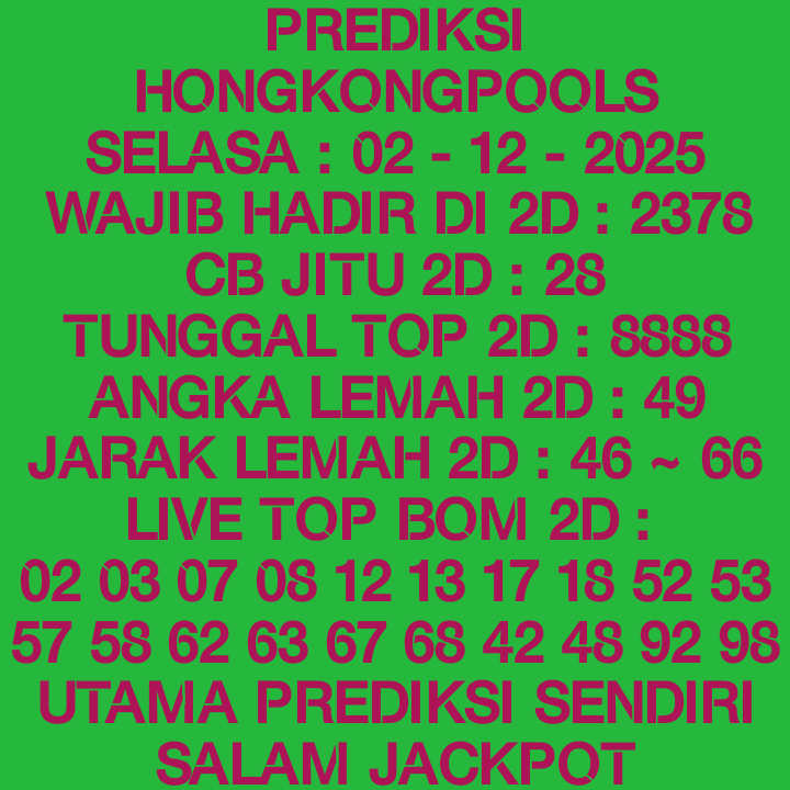 Prediksi HK Kamis, 27-11-2025 Merupakan Prediksi Otomatis yang menggabungkan Metode Kalender Togel Dengan LN Generator yang akurasi prediksinya sudah kita ketahui bersama. Jadi harap Maklum Jika kadang meleset Prediksi HK kita. Jadikan ini sebagai perbandingan saja dan tetap Utamakan karya sendiri