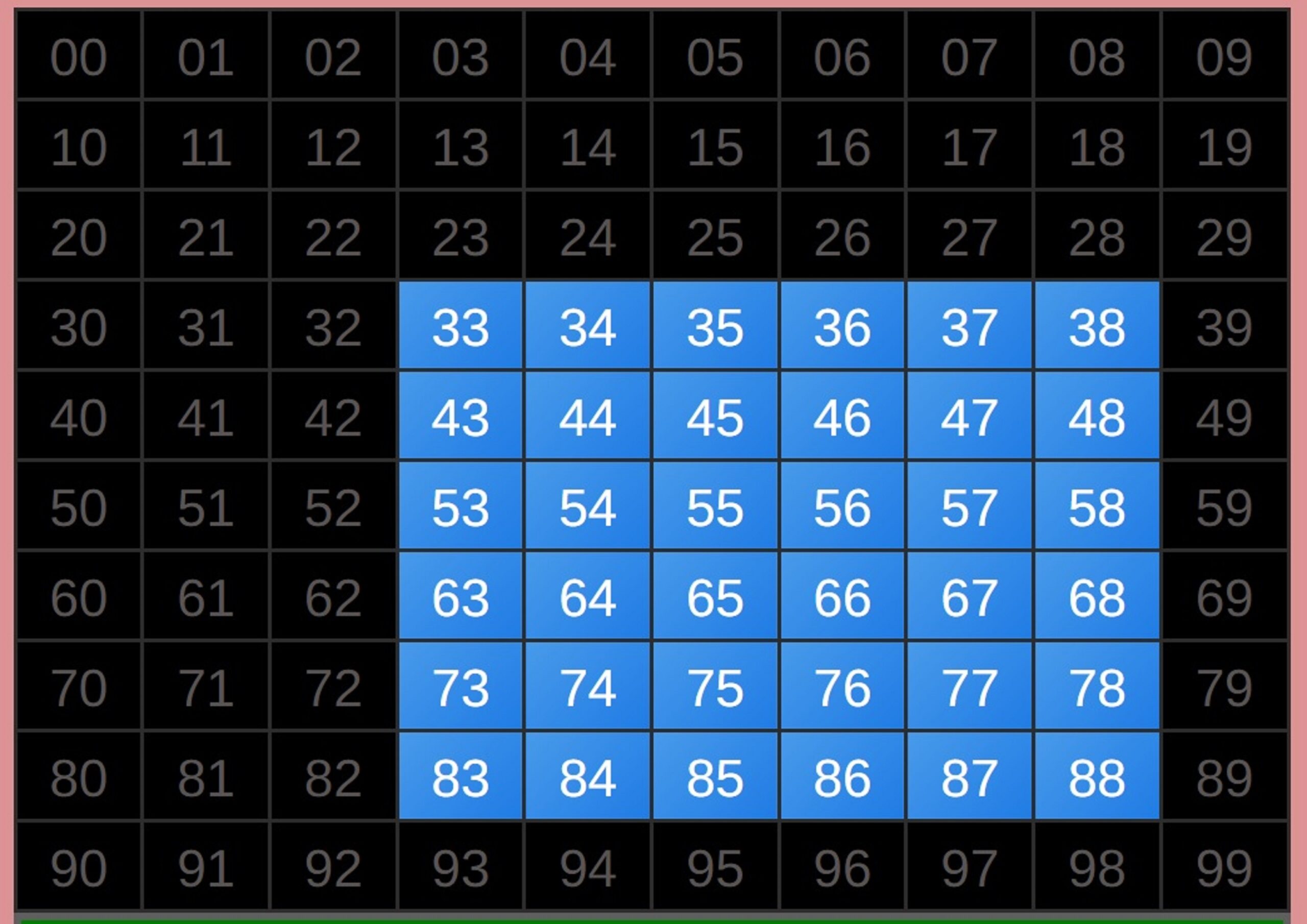 | Rumus Angka Mati berdasarkan kepala harian | 04 06 07 09 10 18 19 20 21 29 30 31 32 42 43 50 51 53 54 61 62 64 71 72 73 74 75 76 82 83 84 85 86 87 93 94 95 96 98 |