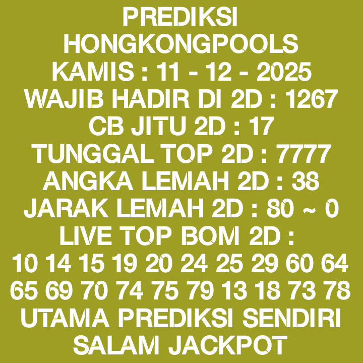 Prediksi HK Selasa, 25-11-2025 Merupakan Prediksi Otomatis yang menggabungkan Metode Kalender Togel Dengan LN Generator yang akurasi prediksinya sudah kita ketahui bersama. Jadi harap Maklum Jika kadang meleset Prediksi HK kita. Jadikan ini sebagai perbandingan saja dan tetap Utamakan karya sendiri