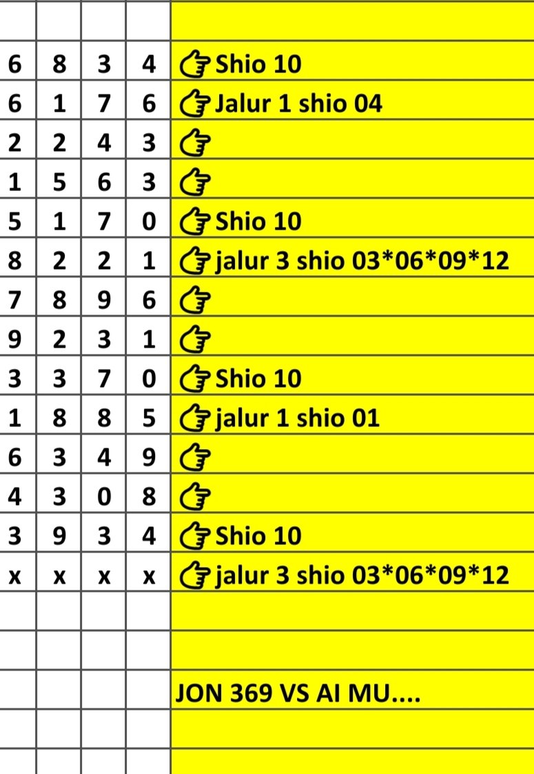 Prediksi Ini Berubah secara otomatis sesuai hari dan result pasaran masing-masing. Untuk melihat prediksi sebelumnya klik tombol nomor hitam diatas