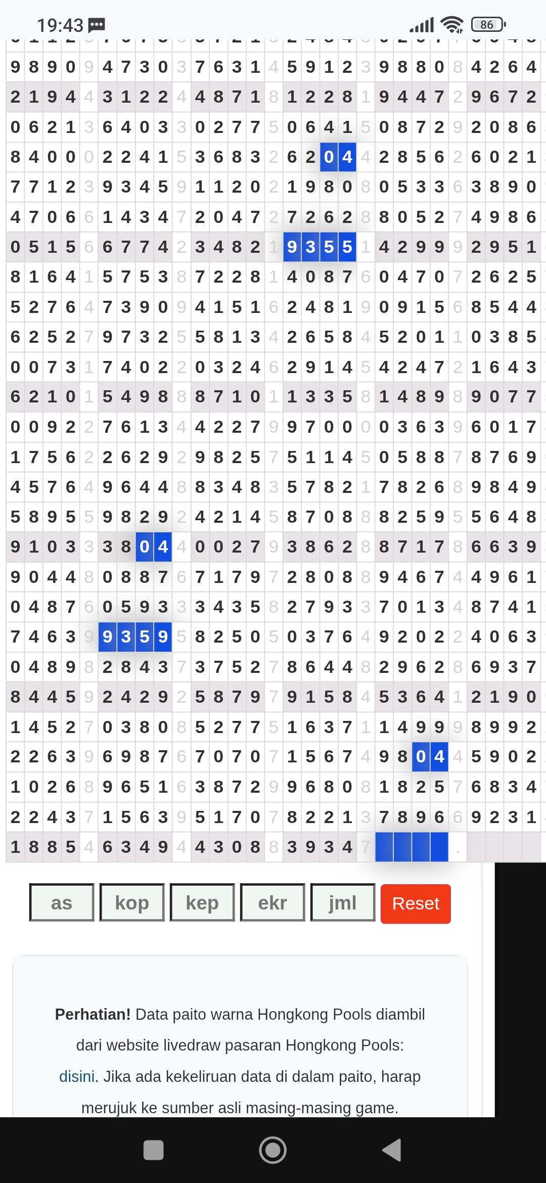 | Rumus Angka Mati berdasarkan kepala harian | 04 05 06 07 08 09 10 15 16 17 18 21 26 28 29 30 31 32 41 42 43 52 53 54 64 65 72 73 75 76 83 84 86 93 94 95 96 97 98 |