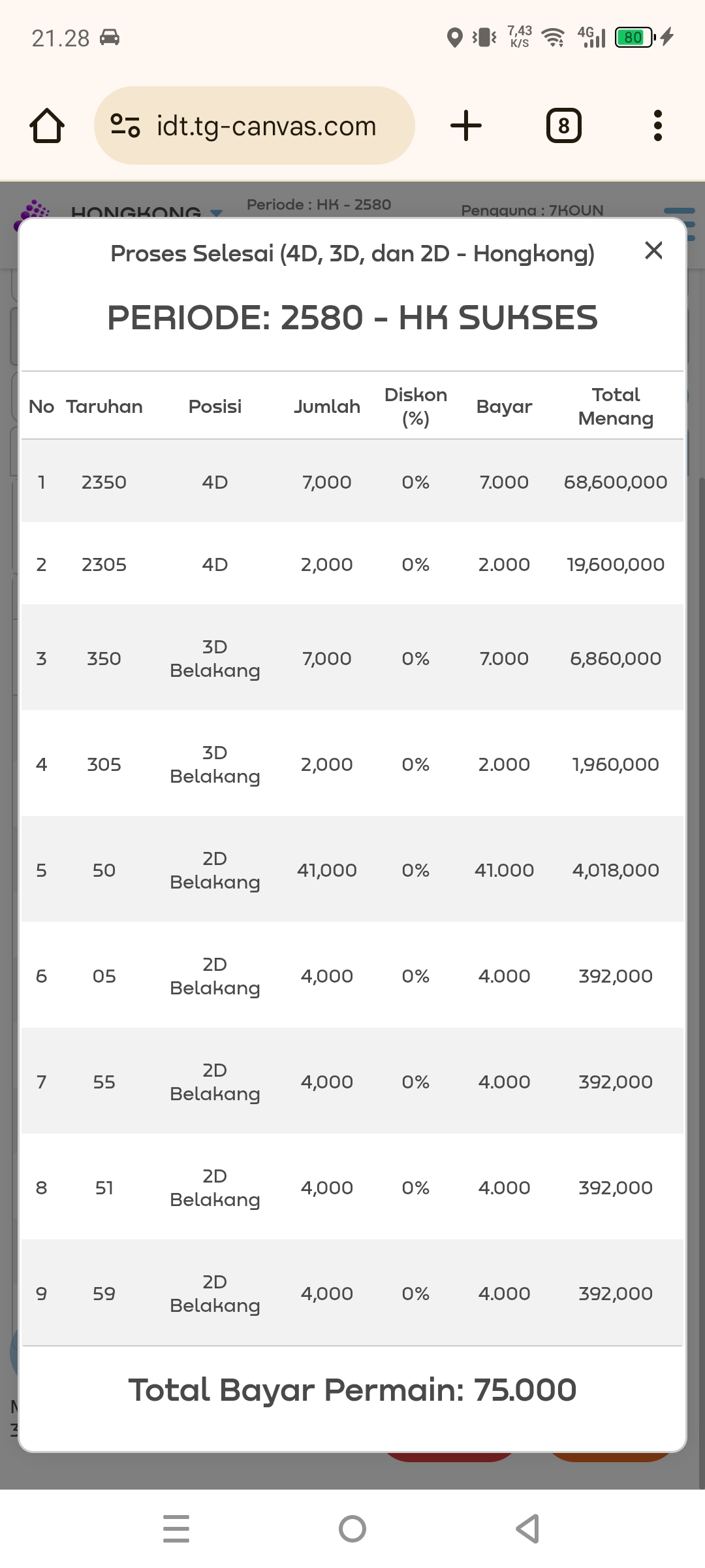 | Angka Ikut berdasarkan Kalender Jawa | 24678 |