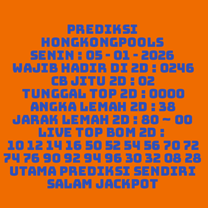 Prediksi HK Jumat, 09-01-2026 Merupakan Prediksi Otomatis yang menggabungkan Metode Kalender Togel Dengan LN Generator yang akurasi prediksinya sudah kita ketahui bersama. Jadi harap Maklum Jika kadang meleset Prediksi HK kita. Jadikan ini sebagai perbandingan saja dan tetap Utamakan karya sendiri