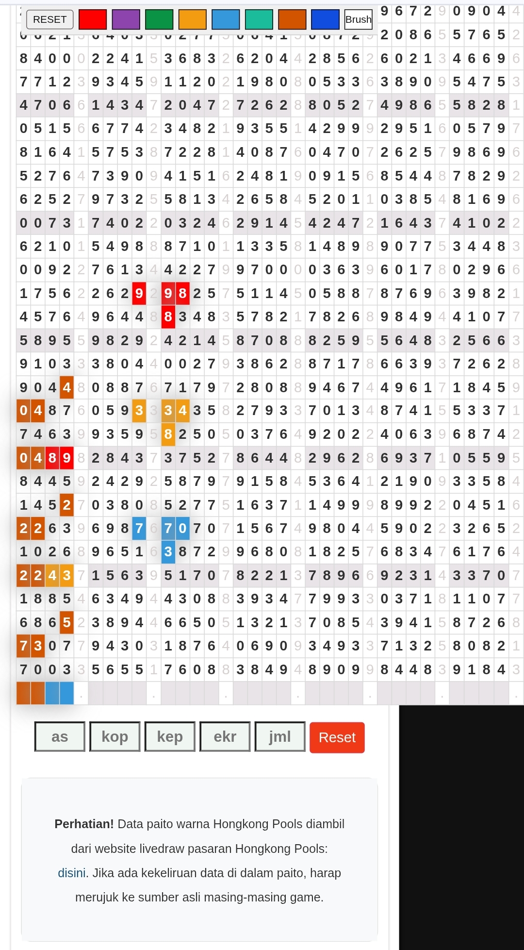 | Rumus Angka Mati berdasarkan kepala harian | 04 05 06 07 08 09 10 15 16 17 18 21 26 28 29 30 31 32 41 42 43 52 53 54 64 65 72 73 75 76 83 84 86 93 94 95 96 97 98 |