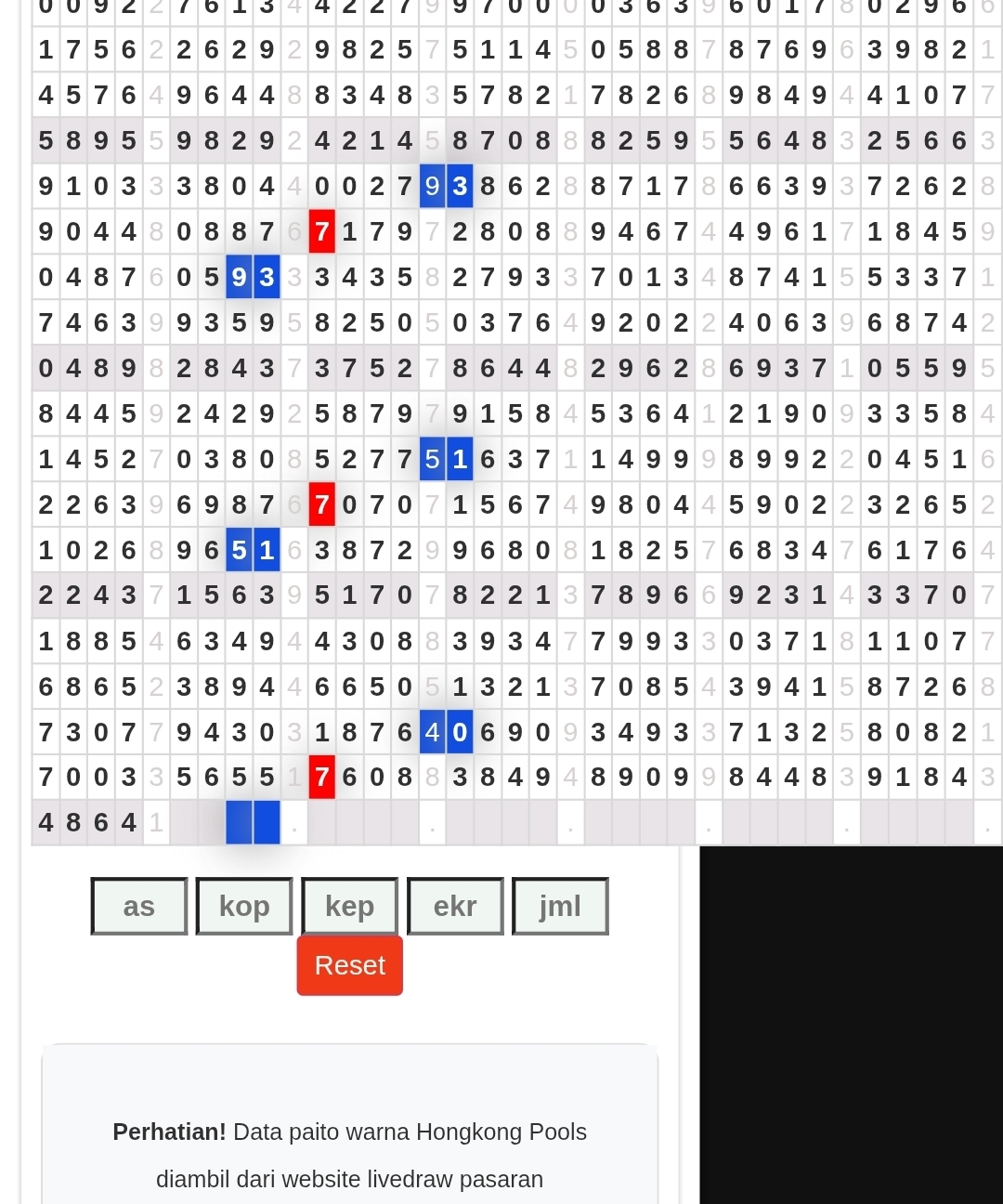 | Rumus Angka Mati berdasarkan kepala harian | 07 08 09 10 18 19 20 21 29 31 32 40 42 43 49 50 51 53 60 61 62 63 64 65 71 72 73 74 75 76 82 83 84 85 87 93 95 96 98 |