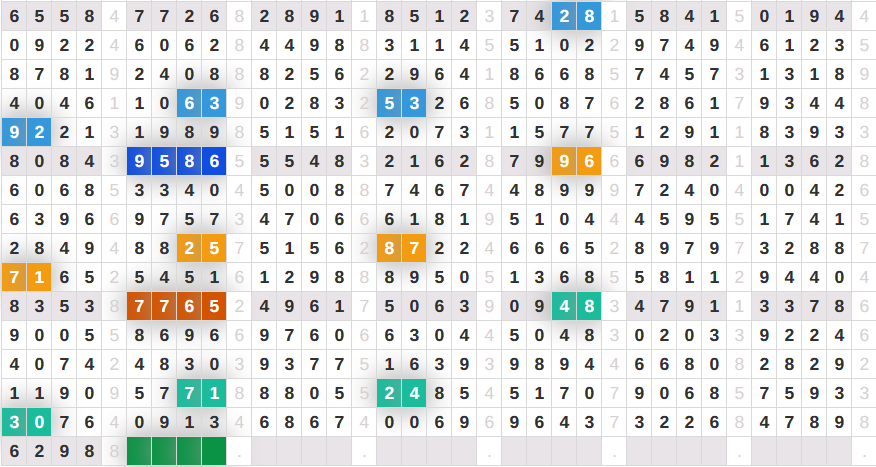 | Rumus Angka Mati berdasarkan kepala harian | 05 06 08 10 15 16 17 18 19 20 21 26 27 28 29 30 32 37 38 39 40 41 43 48 52 53 54 63 64 65 74 75 76 86 87 94 95 97 98 |