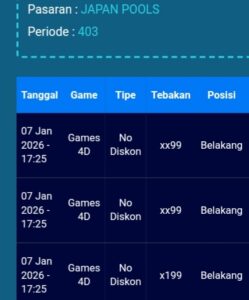 Prediksi Japan Sabtu, 27-12-2025 Merupakan Prediksi Otomatis yang menggabungkan Metode Kalender Togel Dengan LN Generator yang akurasi prediksinya sudah kita ketahui bersama. Jadi harap Maklum Jika kadang meleset Prediksi Japan kita. Jadikan ini sebagai perbandingan saja dan tetap Utamakan karya sendiri