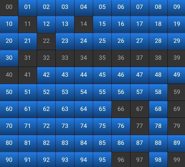 | Rumus Angka Mati berdasarkan kepala harian | 07 08 09 10 18 19 20 21 29 31 32 40 42 43 49 50 51 53 60 61 62 63 64 65 71 72 73 74 75 76 82 83 84 85 87 93 95 96 98 |