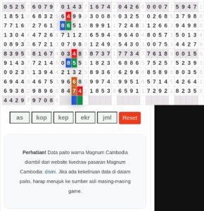 Prediksi Magnum Cambodia Kamis, 06-11-2025 Merupakan Prediksi Otomatis yang menggabungkan Metode Kalender Togel Dengan LN Generator yang akurasi prediksinya sudah kita ketahui bersama. Jadi harap Maklum Jika kadang meleset Prediksi Magnum Cambodia kita. Jadikan ini sebagai perbandingan saja dan tetap Utamakan karya sendiri