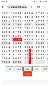 | Rumus Angka Mati berdasarkan kepala harian | 07 08 09 10 18 19 20 21 31 32 38 39 40 42 49 50 51 52 53 54 59 60 61 62 63 64 65 71 72 73 74 76 82 84 85 87 96 97 98 |