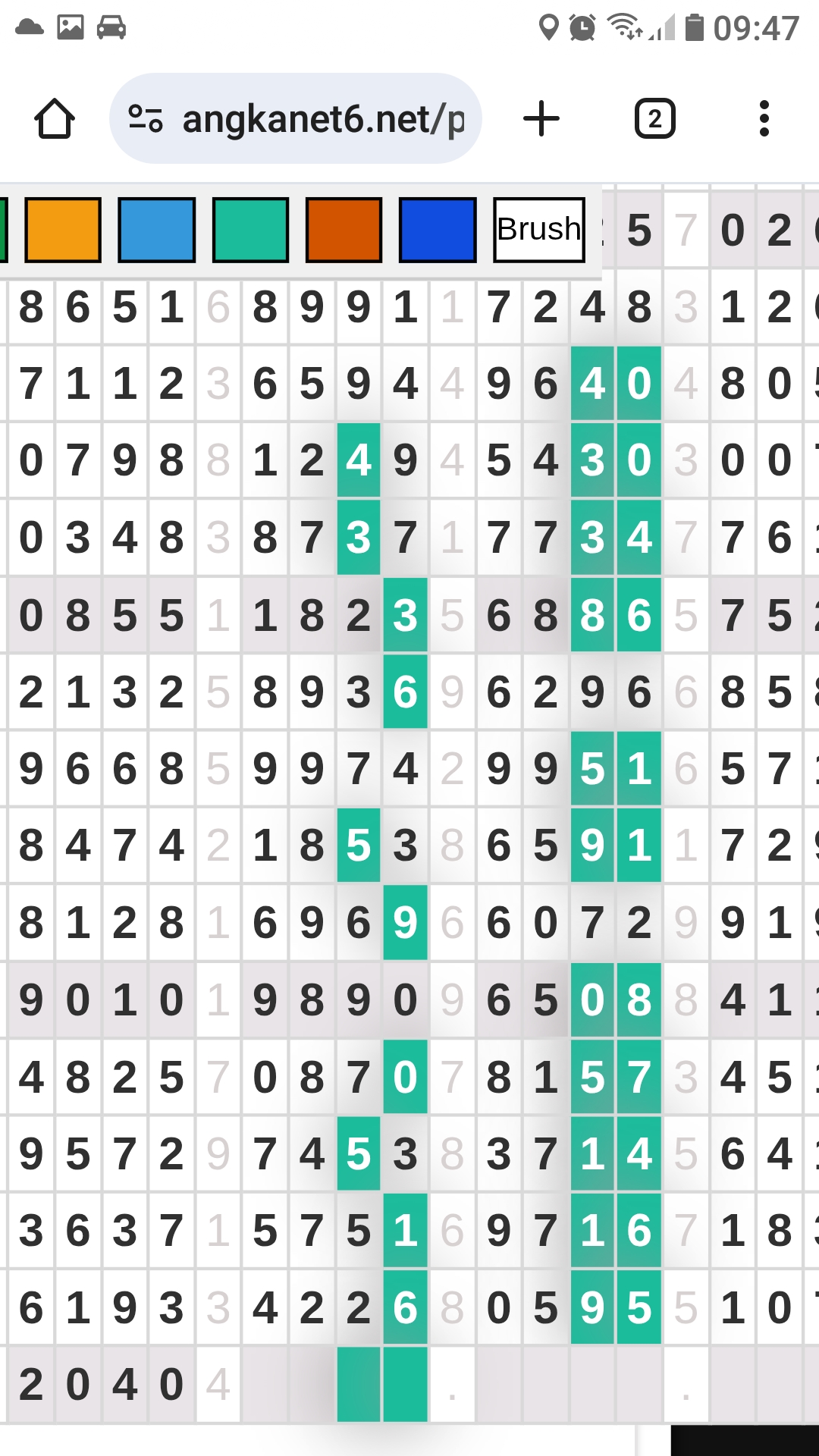 | Rumus Angka Mati berdasarkan kepala harian | 07 08 09 10 19 20 21 27 28 31 38 39 40 41 42 43 48 49 50 51 52 53 54 59 60 61 62 63 65 71 73 74 76 85 86 87 96 97 98 |