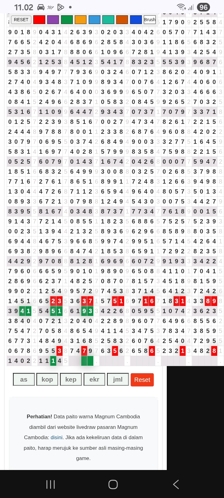 | Rumus Angka Mati berdasarkan kepala harian | 05 06 08 10 15 16 17 18 19 20 21 26 27 28 29 30 32 37 38 39 40 41 43 48 52 53 54 63 64 65 74 75 76 86 87 94 95 97 98 |