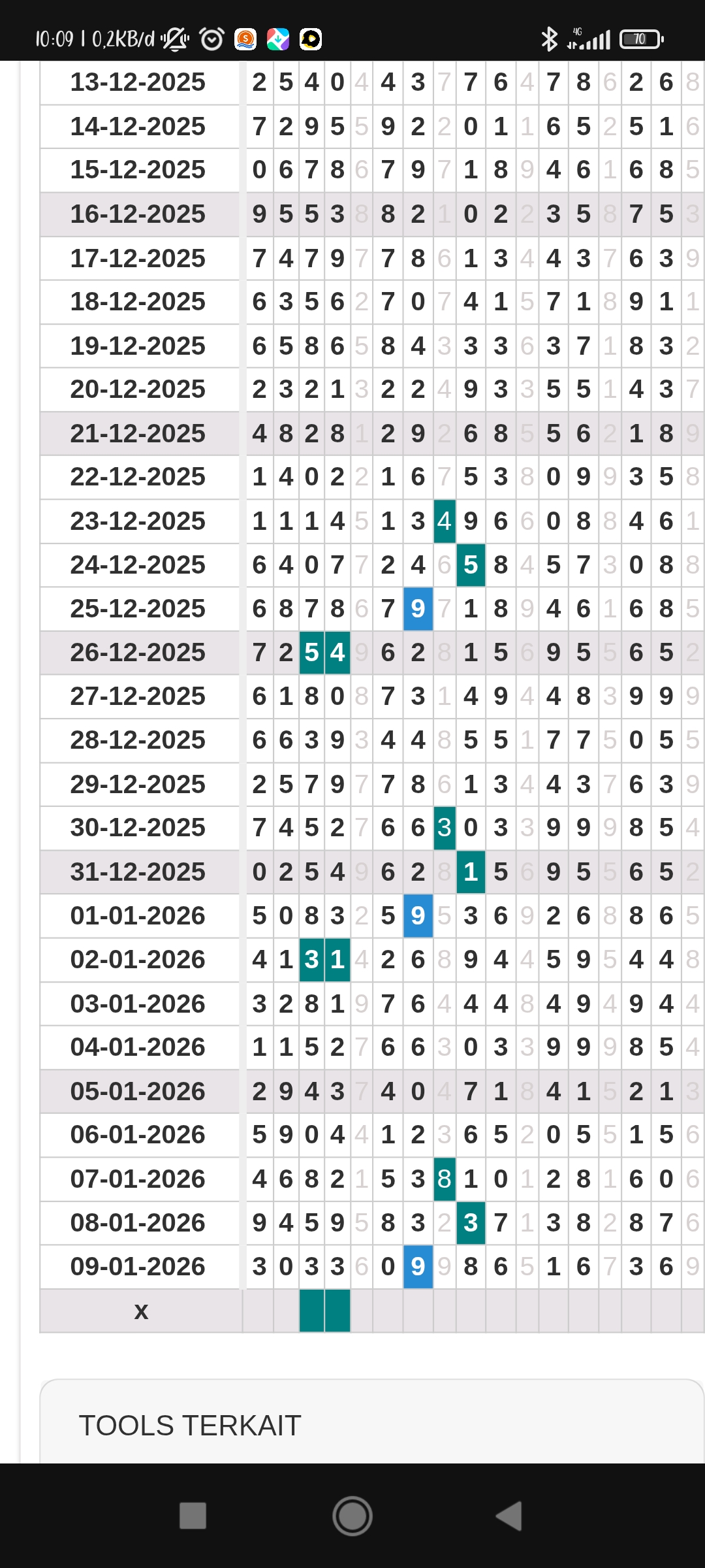 | Rumus Angka Mati berdasarkan kepala harian | 04 06 07 09 10 18 19 20 21 29 30 31 32 42 43 50 51 53 54 61 62 64 71 72 73 74 75 76 82 83 84 85 86 87 93 94 95 96 98 |