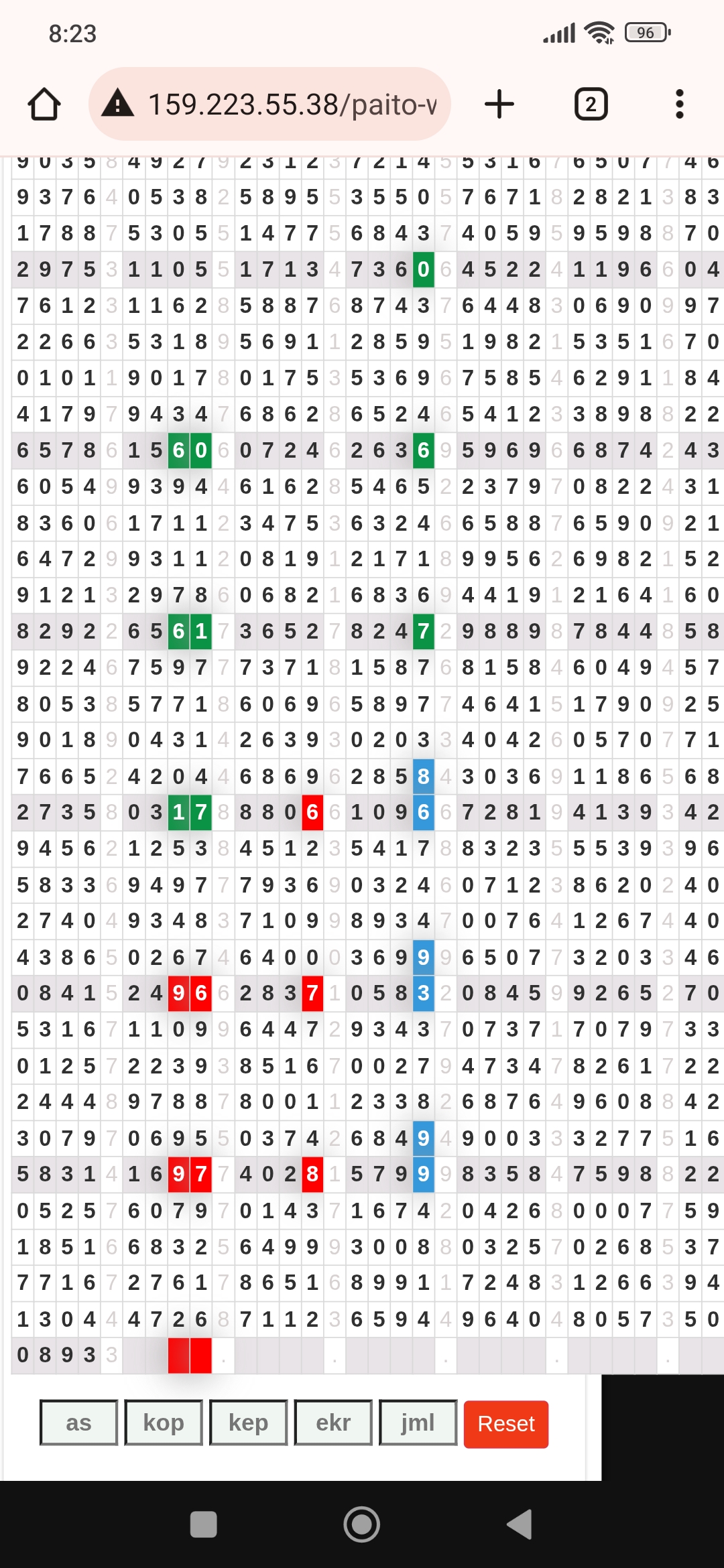| Rumus Angka Mati berdasarkan kepala harian | 04 06 07 09 10 18 19 20 21 29 30 31 32 42 43 50 51 53 54 61 62 64 71 72 73 74 75 76 82 83 84 85 86 87 93 94 95 96 98 |